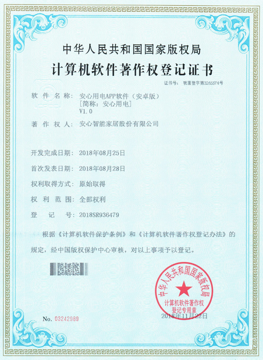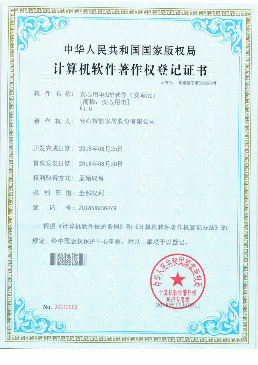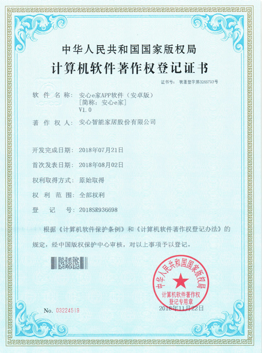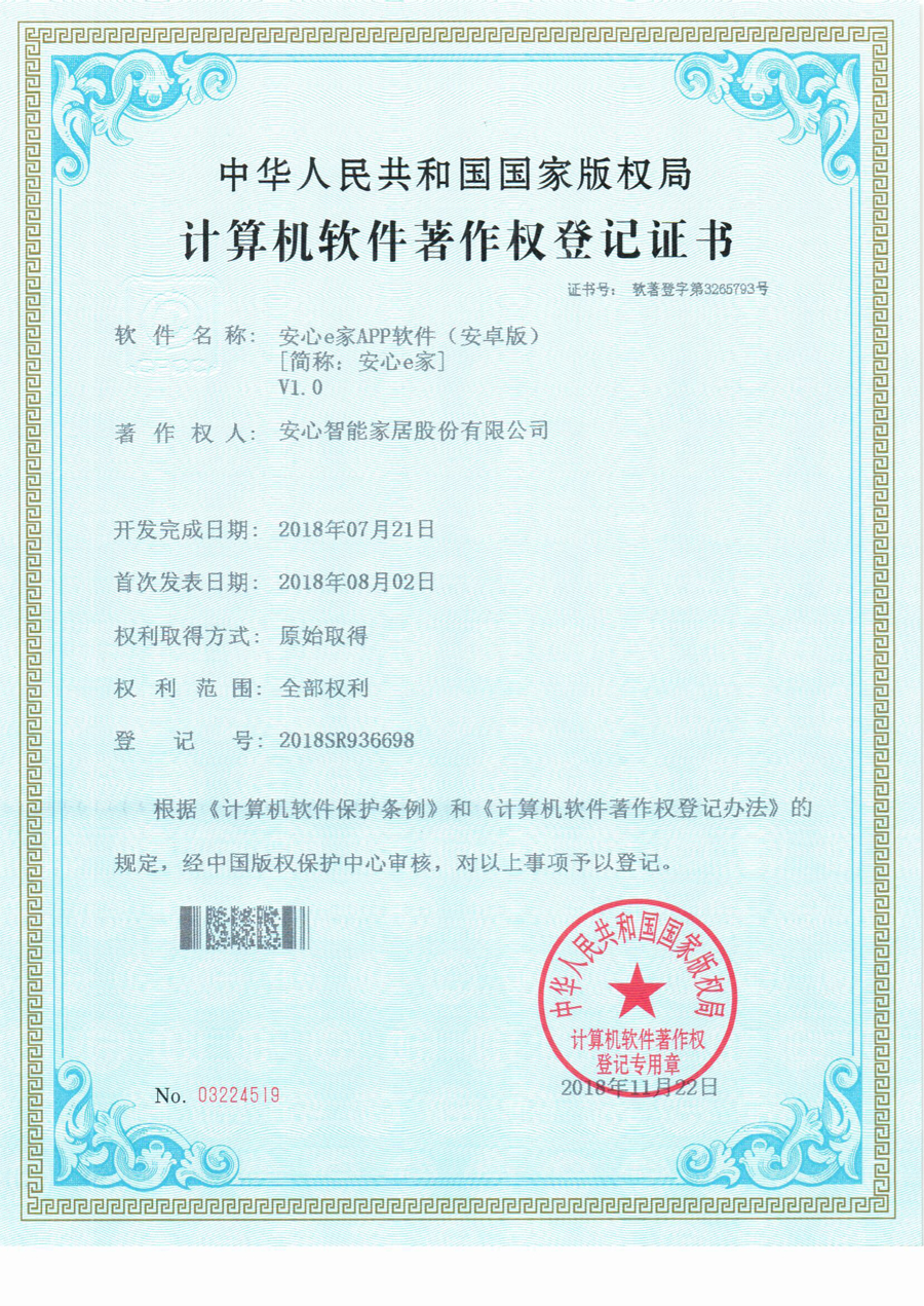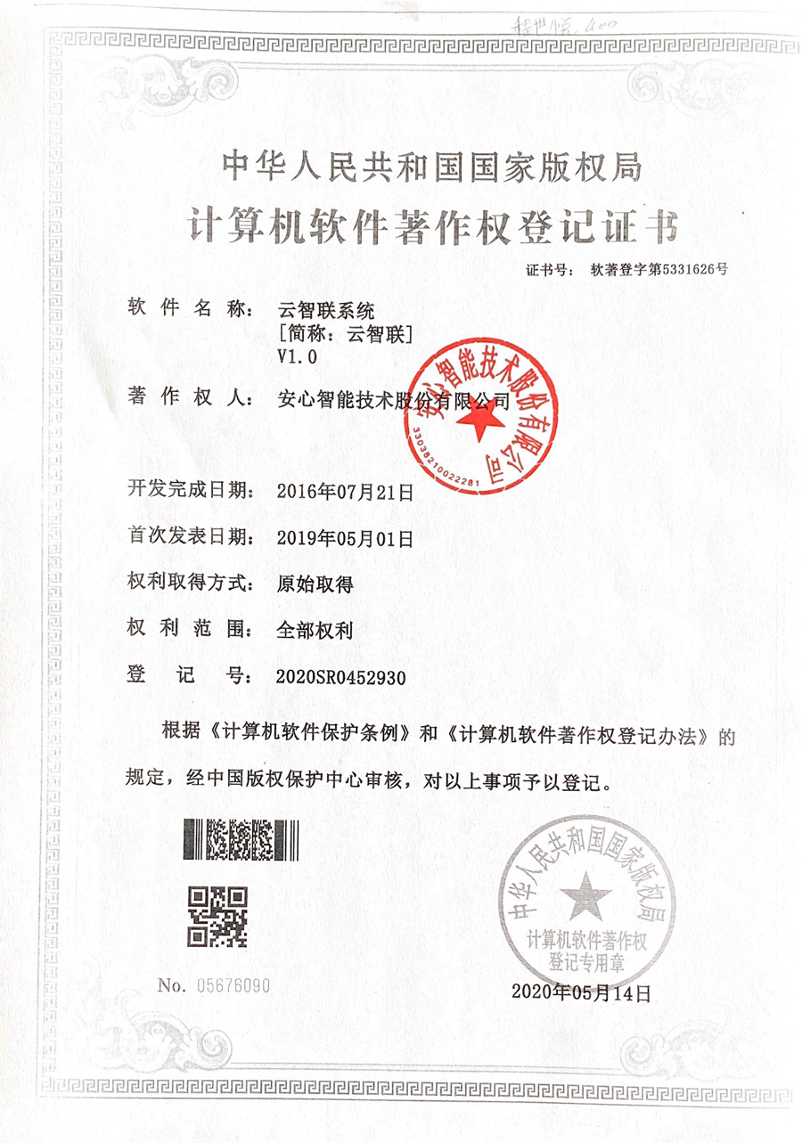 - 計算機軟件著作權登記證書
